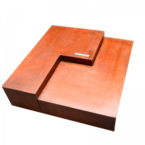 Mesa de centro color caramelo, articulable. La mesa se compone de dos piezas desmontables, articuladas en una optima e integral mesa de centro.